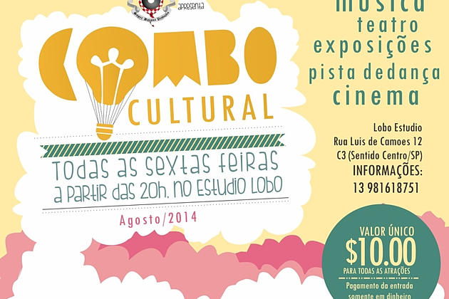 Realizado pela SuperBacana Produções e Eventos, o COMBO CULTURAL vai acontecer todas as sextas-feira no Estudio Lobo, em, Santos. O projeto como o próprio nome diz deve juntar diversas expressões artistas em um só lugar e ainda oferecer acesso a trabalhos independentes de artistas de Santos e região por um valor acessível, apenas $10 reais.